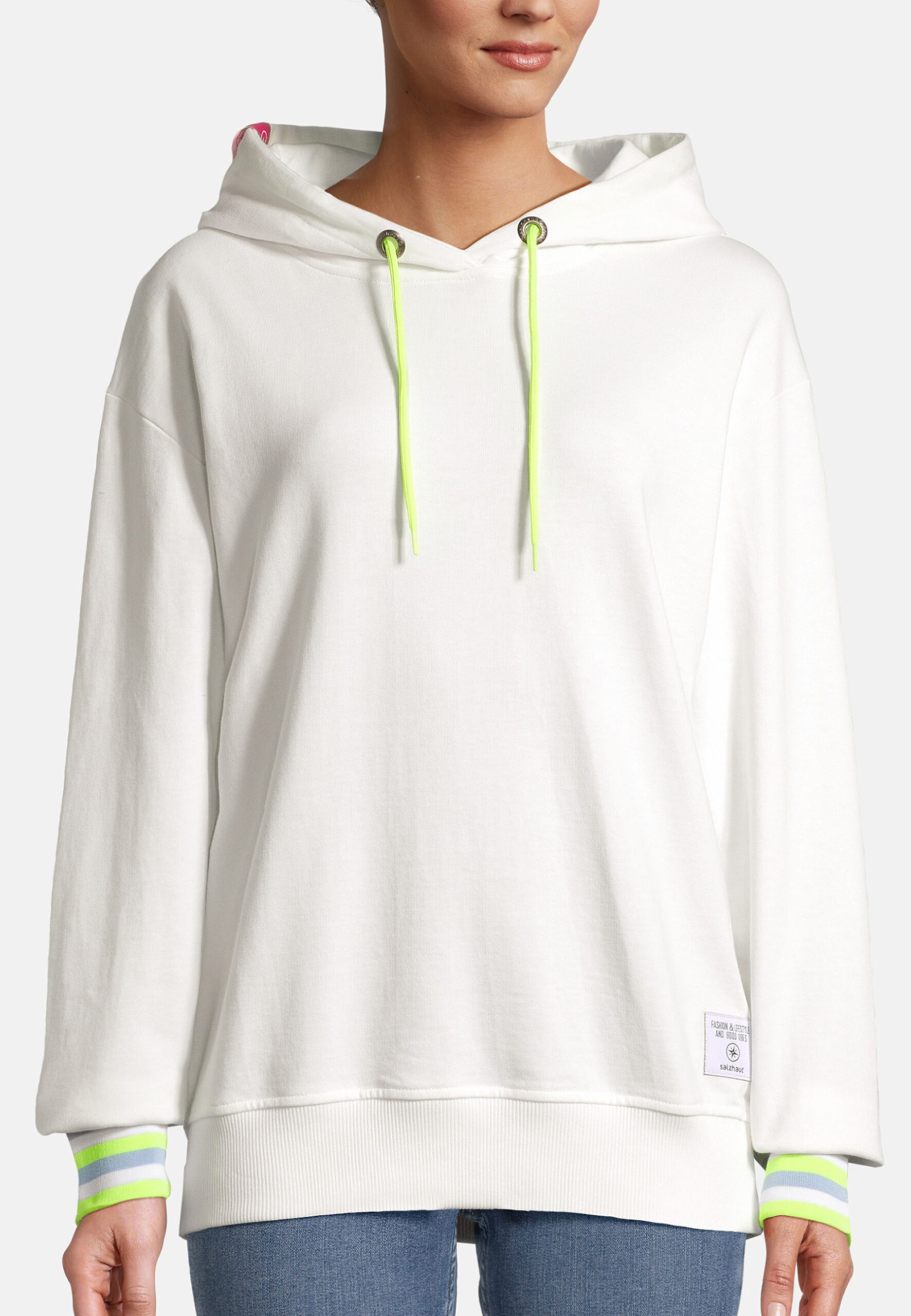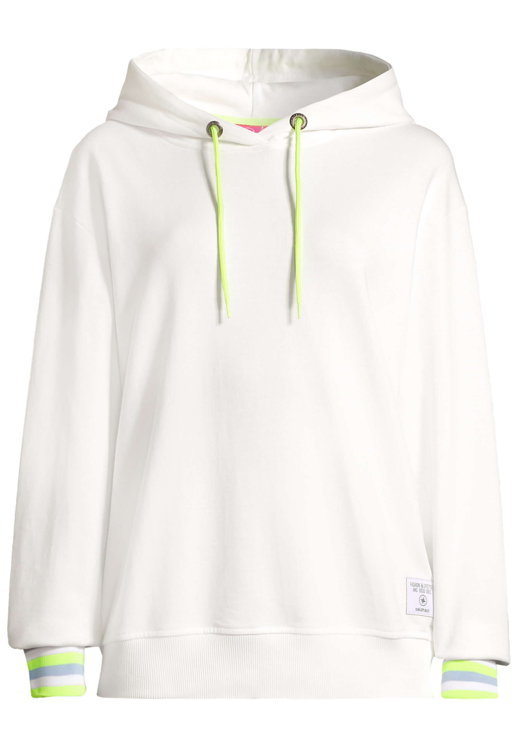 LÜCHTJE – kuschelig in pink oder offwhite mit jeweils knalligbunten Bündchen.
