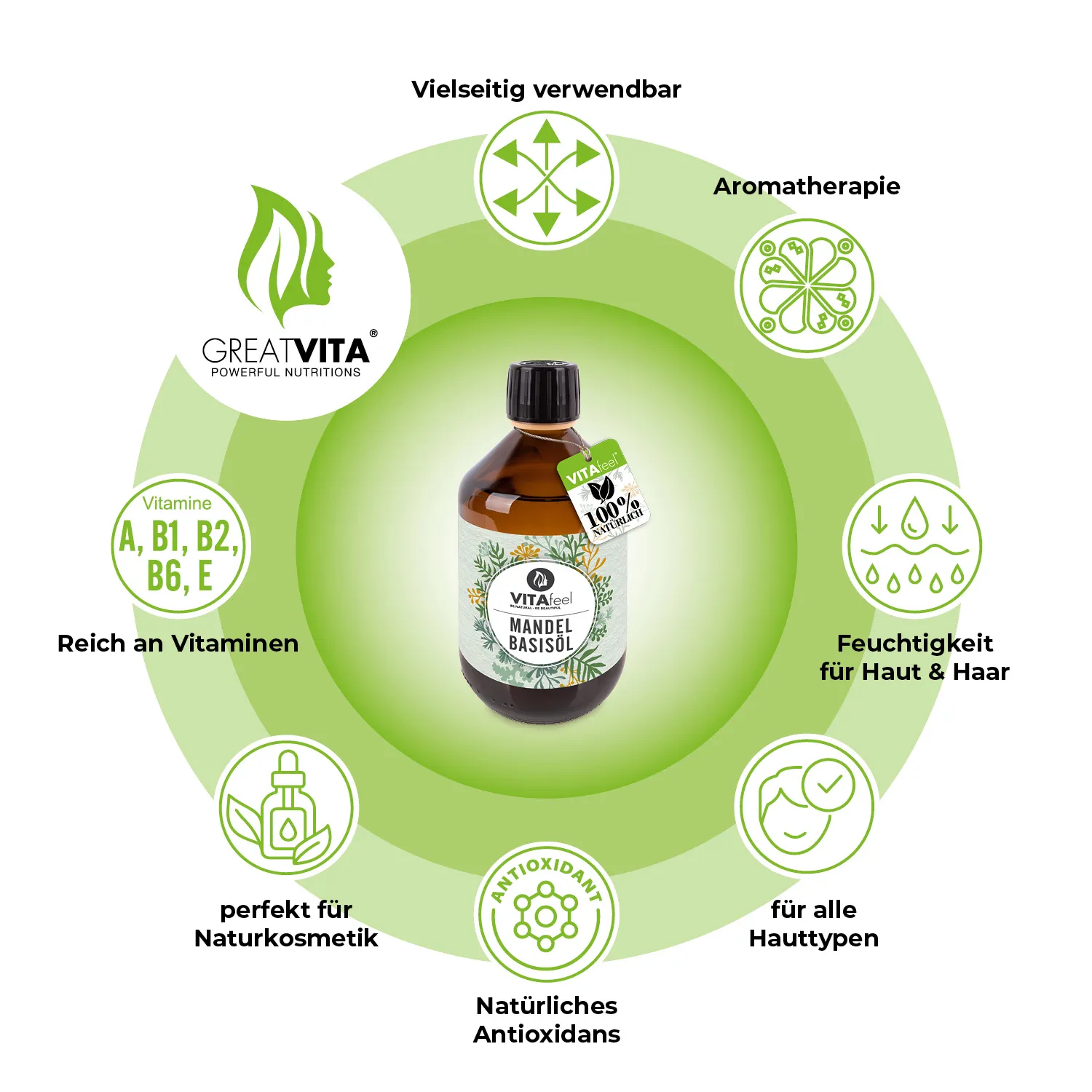Das wertvolle Öl ist reich an Vitamin E, welches eines der stärksten natürlichen Antioxidantien darstellt.