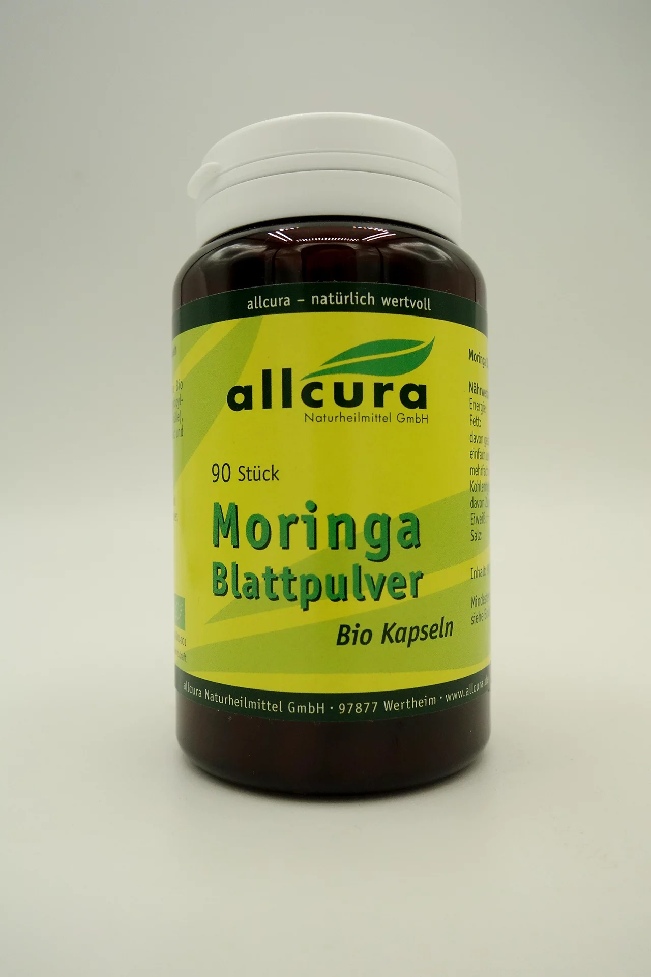 Allcura Moringa Blattpulver Kapseln sind ein Nahrungsergänzungsmittel mit Moringa Blattpulver.