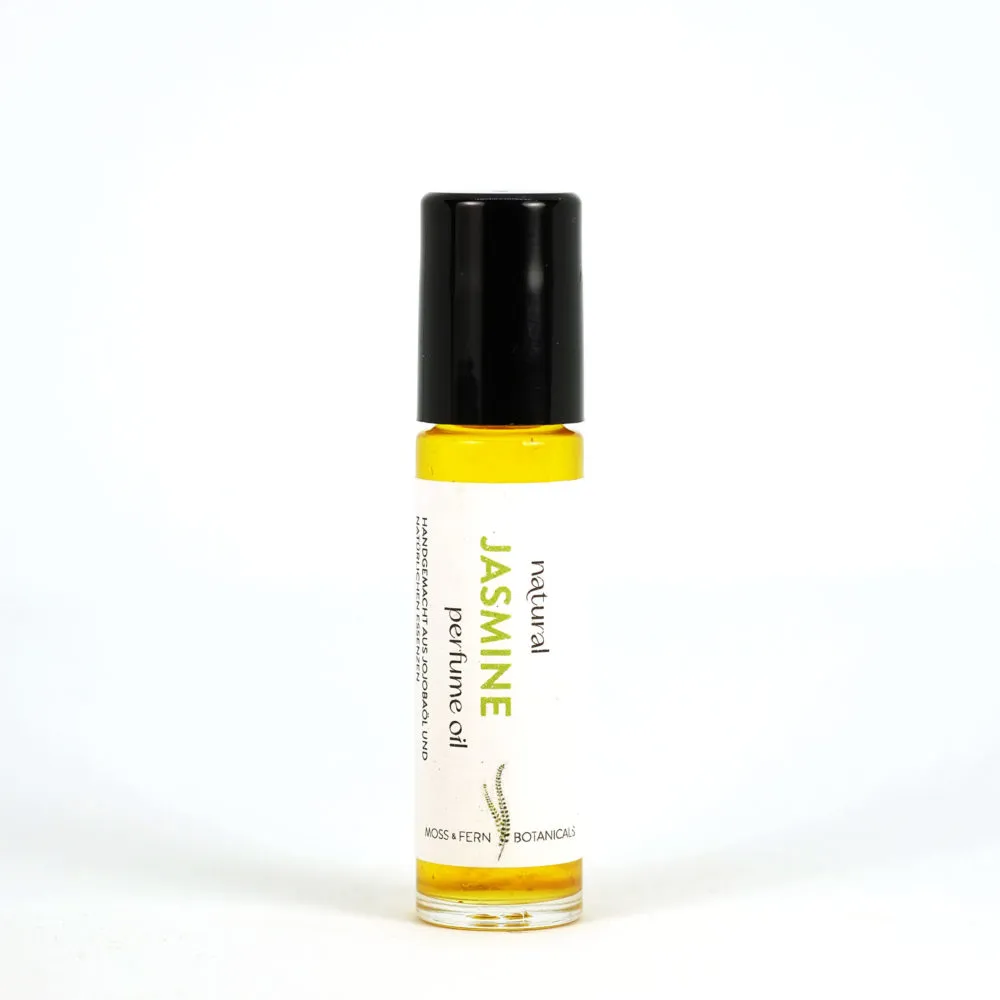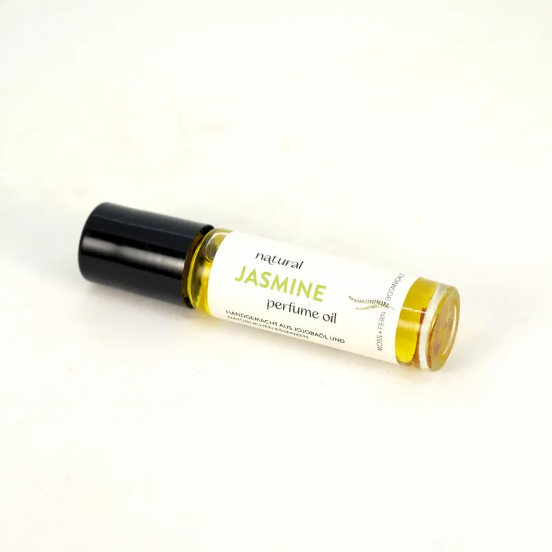 Trage etwas Moss & Fern Jasmine Parfumöl auf Handgelenke, Schläfen, Hals, Schlüsselbeine, Solarplexus oder hinter dem Ohr auf.