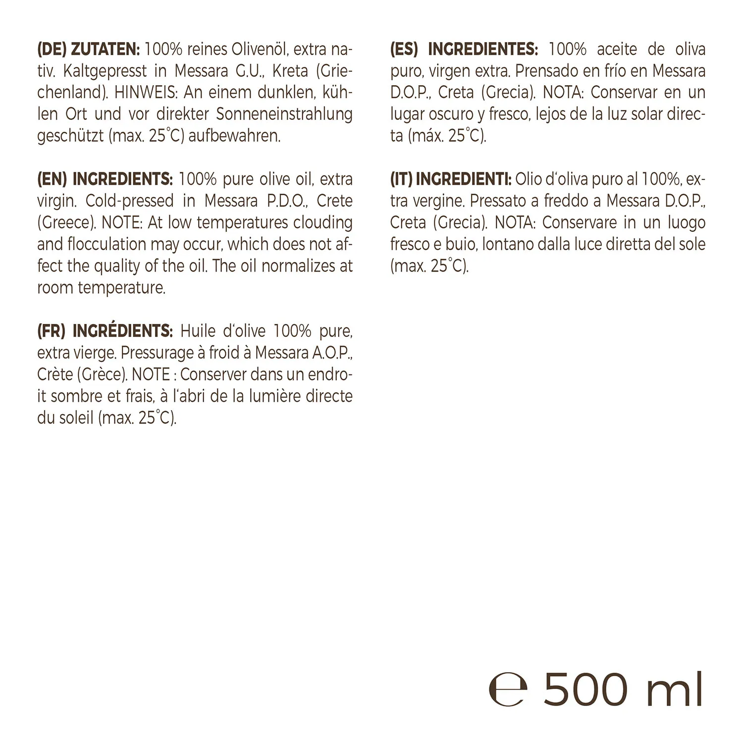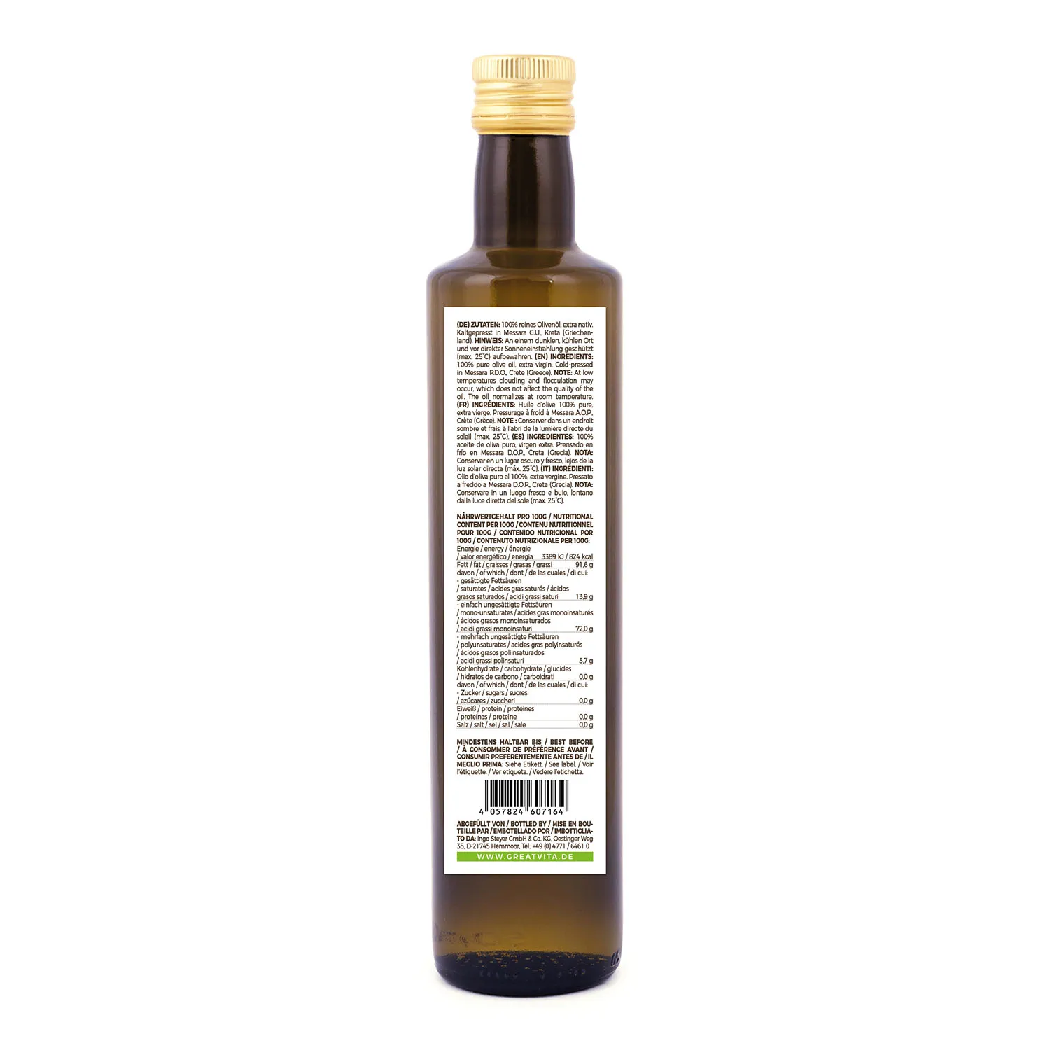 Niemand lebt ewig, aber in manchen Gegenden des Mittelmeerraums kommen die Leute dem ziemlich nahe. Das Geheimnis? Obst, Gemüse, Vollkorn-Getreideprodukte, Hülsenfrüchte, Fisch und vor allem: Olivenöl. Dem flüssigen Gold ist man auch seit einer Weile wissenschaftlich auf der Spur und immer wieder zeigt sich, dass es ein echter Superfood ist. Mit seinen gesättigten Fettsäuren trägt es zu einem gesunden Cholesterinspiegel bei und seine Pflanzenstoffe wirken antioxidativ. Damit unser Olivenöl Dir all diese Benefits gibt, beziehen wir es von ausgewählten Farmen auf Kreta und pressen es kalt. Denn nur so bleibt die maximale Nährstoffmenge erhalten. Und auch, wenn es kaltgepresst ist, bleibt es sehr hitzebeständig. Unser natives Olivenöl ist bis zu 180°C verwendbar. Nur scharf anbraten solltest Du damit nicht, denn dabei werden höhere Temperaturen erreicht.
