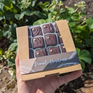 Geröstete Piemont Haselnüsse überzogen mit Milchschokolade aus Kakaobohnen aus Nicaragua.