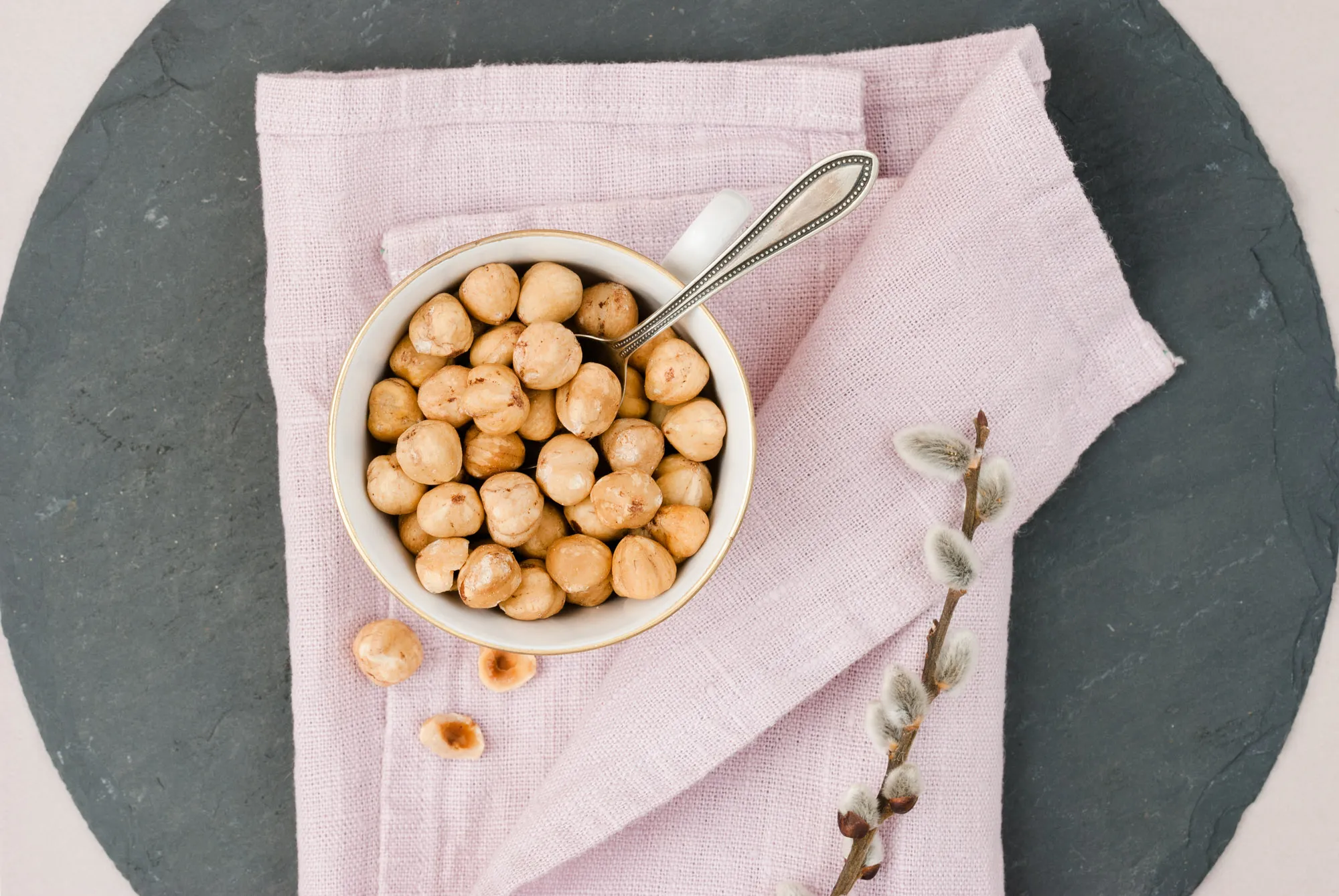 Beste Piemonteser Haselnusskerne, geschält und geröstet. Vermahlen im Kuchen, gehackt im Müsli oder pur genascht.