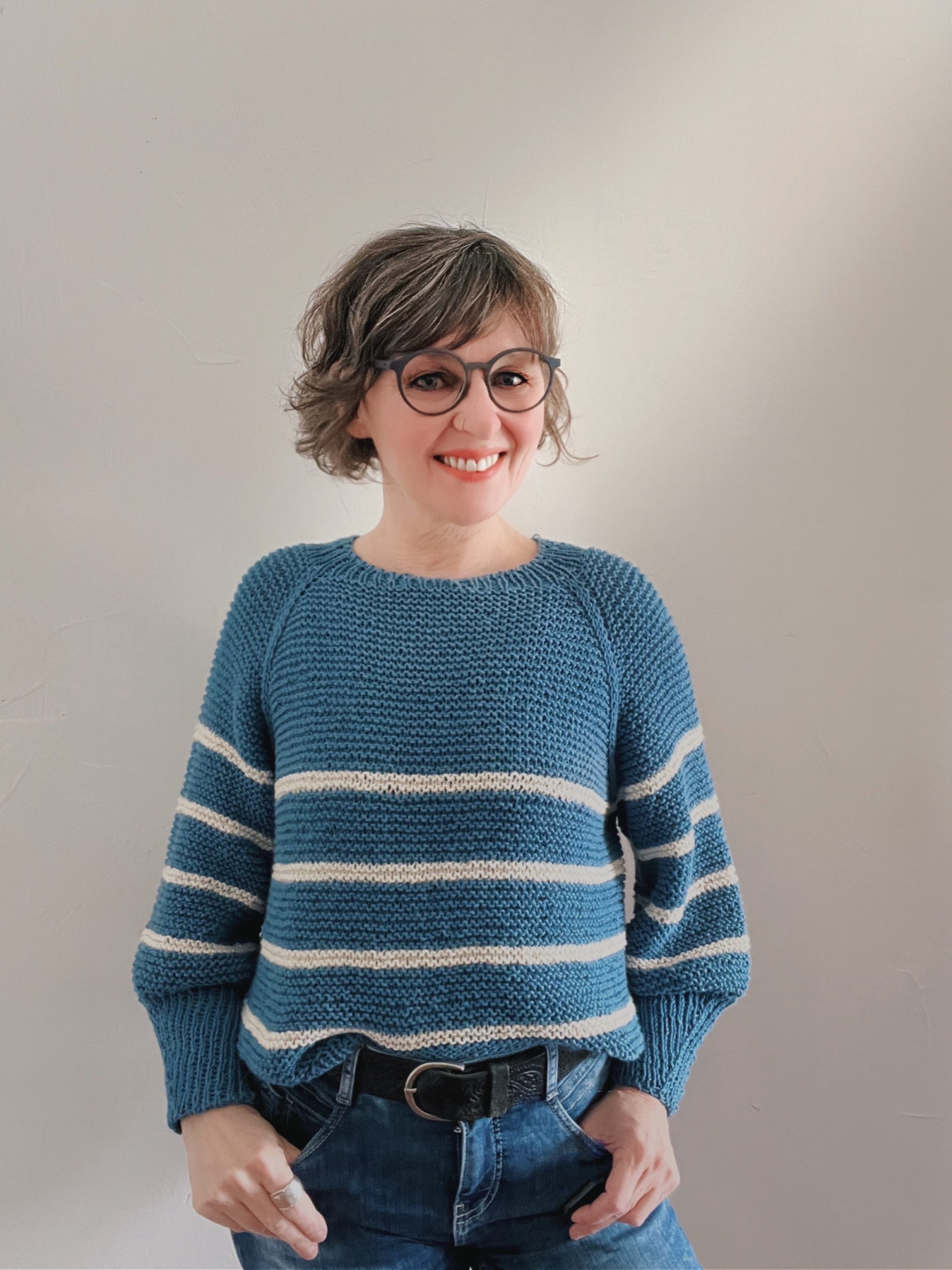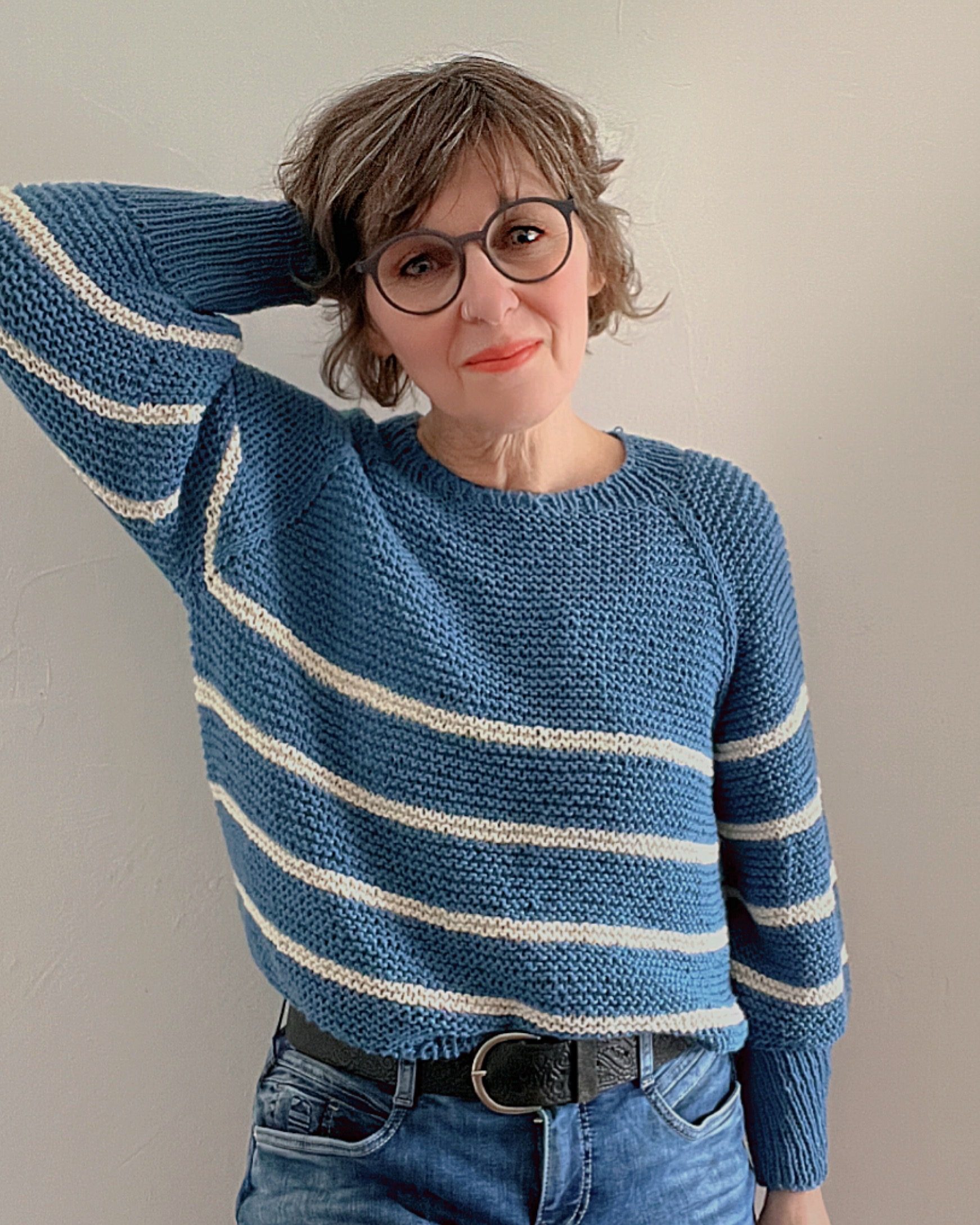 Die Piilo Blouse ist ein klassischer Grobstrickpullover mit Rundhalsausschnitt und wird kraus rechts in Runden gestrickt.