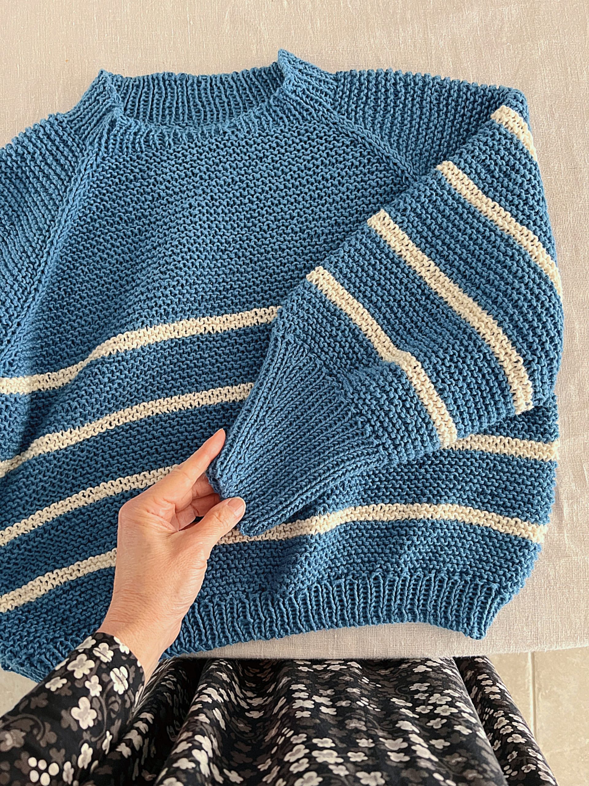 Die Passe wird von oben nach unten mit Raglanzunahmen in Runden gearbeitet.