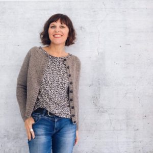 Möchtest du die Streifen wie im gezeigten Modell stricken, benötigst du ca. 50 bis 100 g in der Farbe 00 Natur,