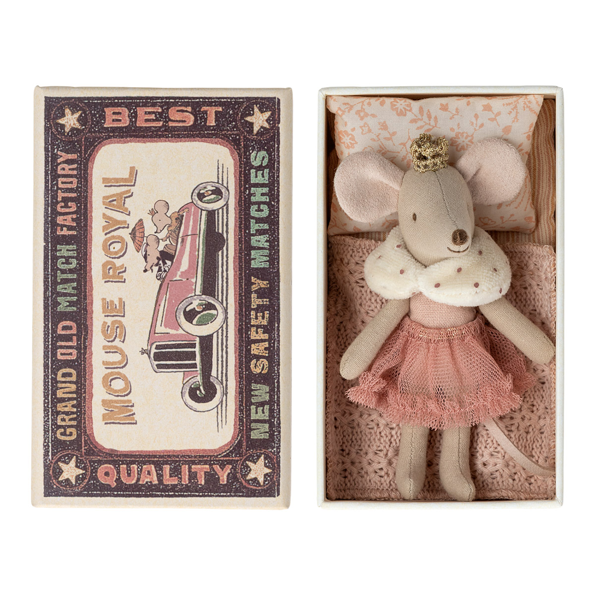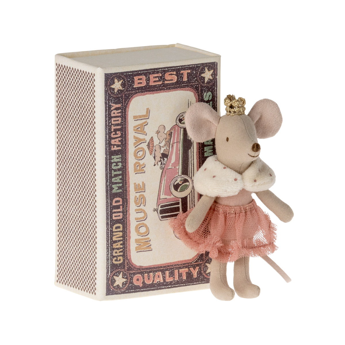 Maus in Streichholzschachtel | Prinzessin | Höhe ca. 11 cm | Baumwolle, Füllung aus recyceltem Polyester und Granulat | bei 30° C waschbar | Marke Maileg