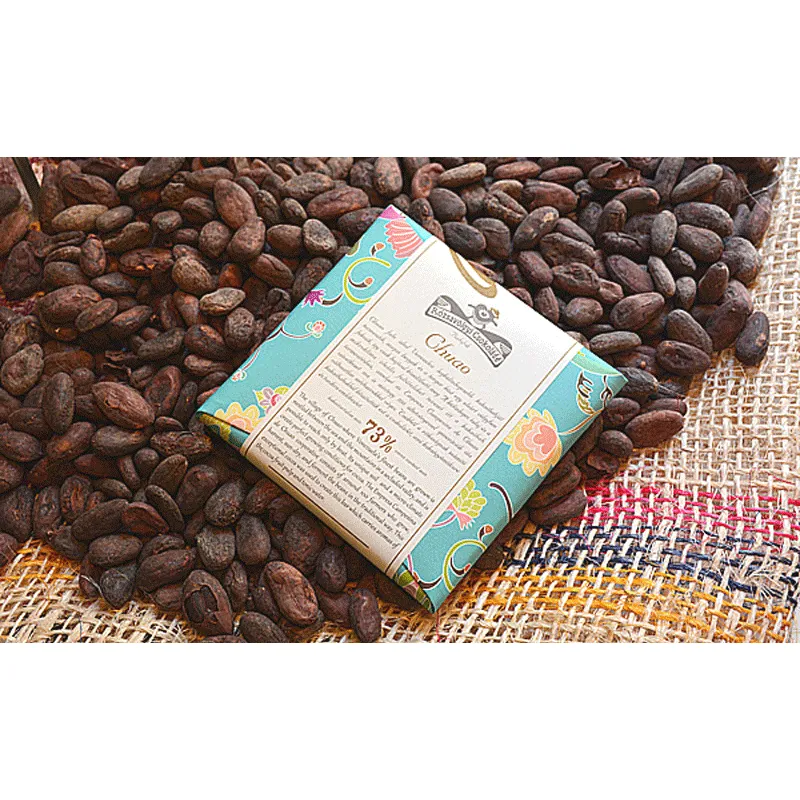 Zutaten*: Kakaobohnen, Bio-Rohrzucker, Bio-Kakaobutter. Kakaoanteil 73% mind. Kann Spuren von Milch, Gluten, Sesam und Nüssen enthalten.