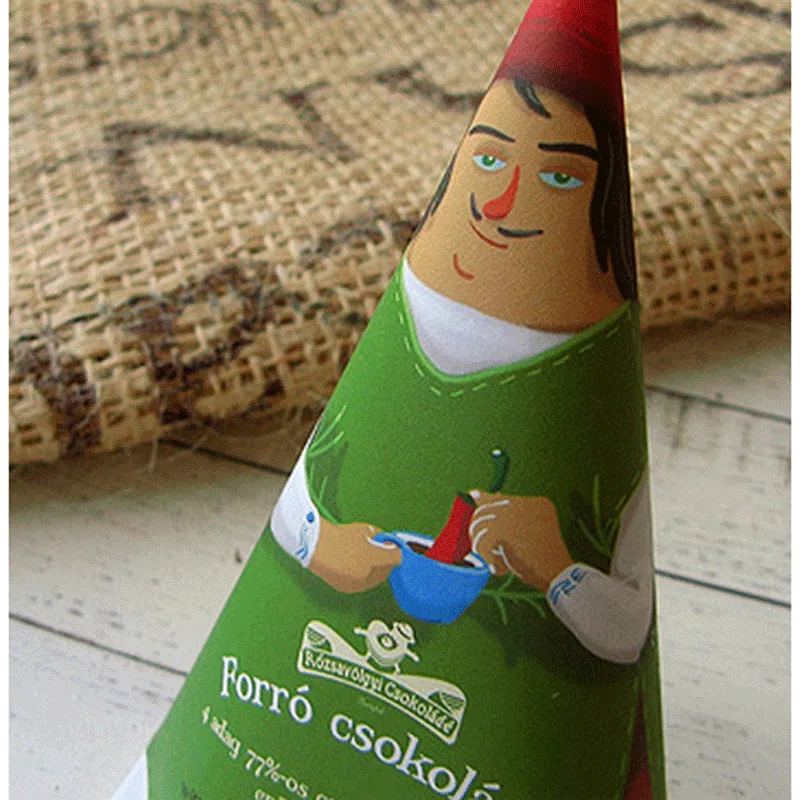 In dieser wunderschönen handgefalteten Tüte Von „Rózsavölgyi Csokoládé“ aus Budapest steckt auch hier eine besondere Trinkschokolade mit Chili und Gewürzen zum Verwöhnen! Bean-to-bar, also von der Kakaobohne an hergestellte Schokolade wird mit scharfem Paprika und wärmenden Gewürzen vermischt und am nächsten Tag ganz fein gehackt.