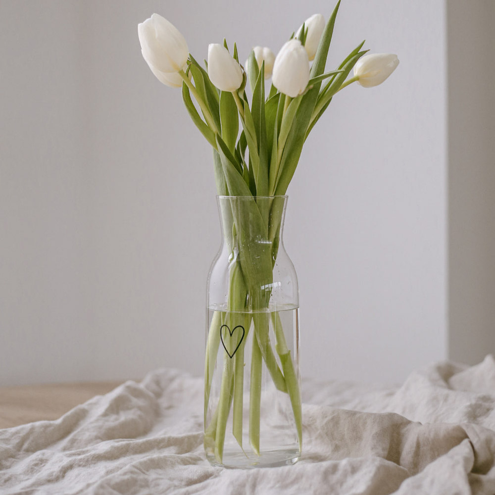 Entdecke unsere wundervolle Karaffe mit schwarzem Design an der Glaswand. So schmeckt das Wasser, die selbstgemachte Zintronen-Limonade, der frisch gepresste Saft, der Wein oder vieles mehr doch gleich noch viel besser. Diese Karaffe ziert ein wundervolles Herz und macht den Wasserkrug zu einem ganz besonderer Hingucker auf deinem Frühstücks- oder Abendtisch!