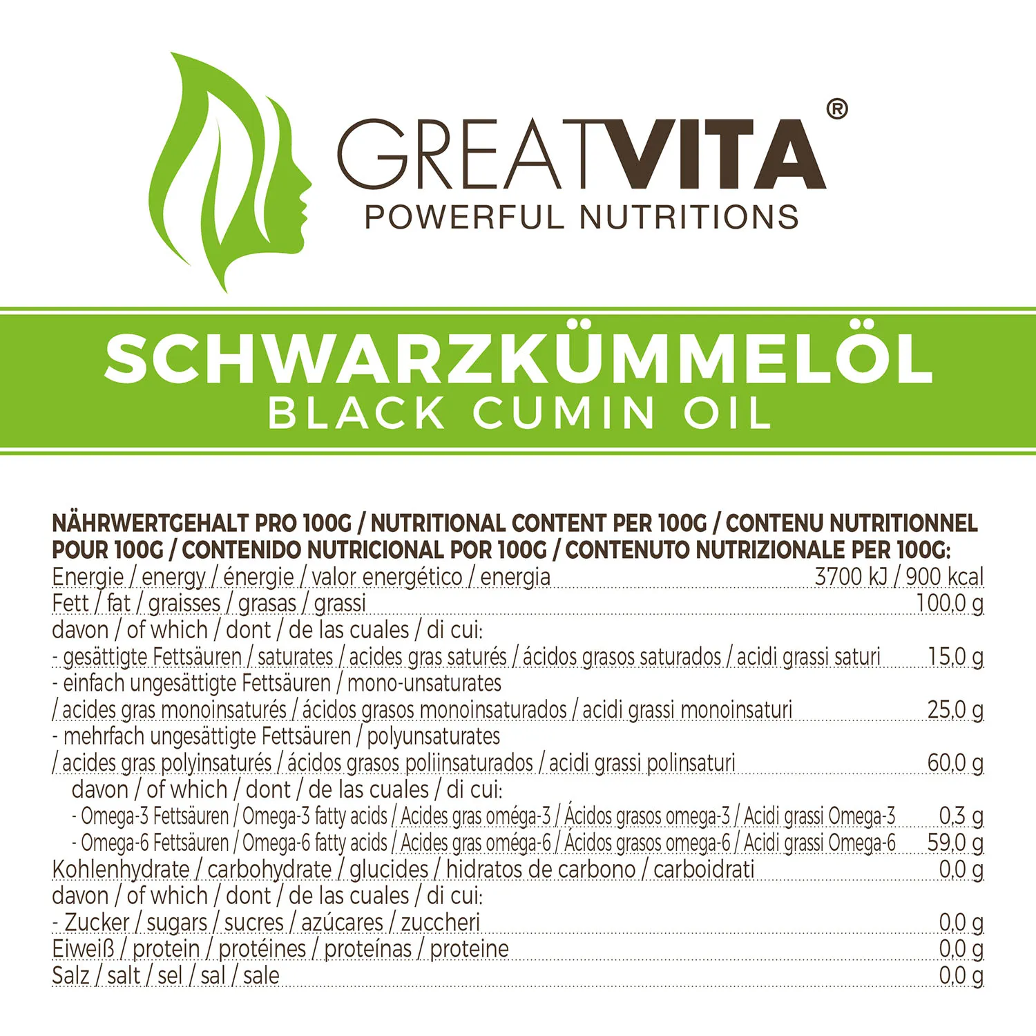 GreatVita Schwarzkümmelöl – 100% Rein und Kaltgepresst für Ihre Gesundheit und Küche