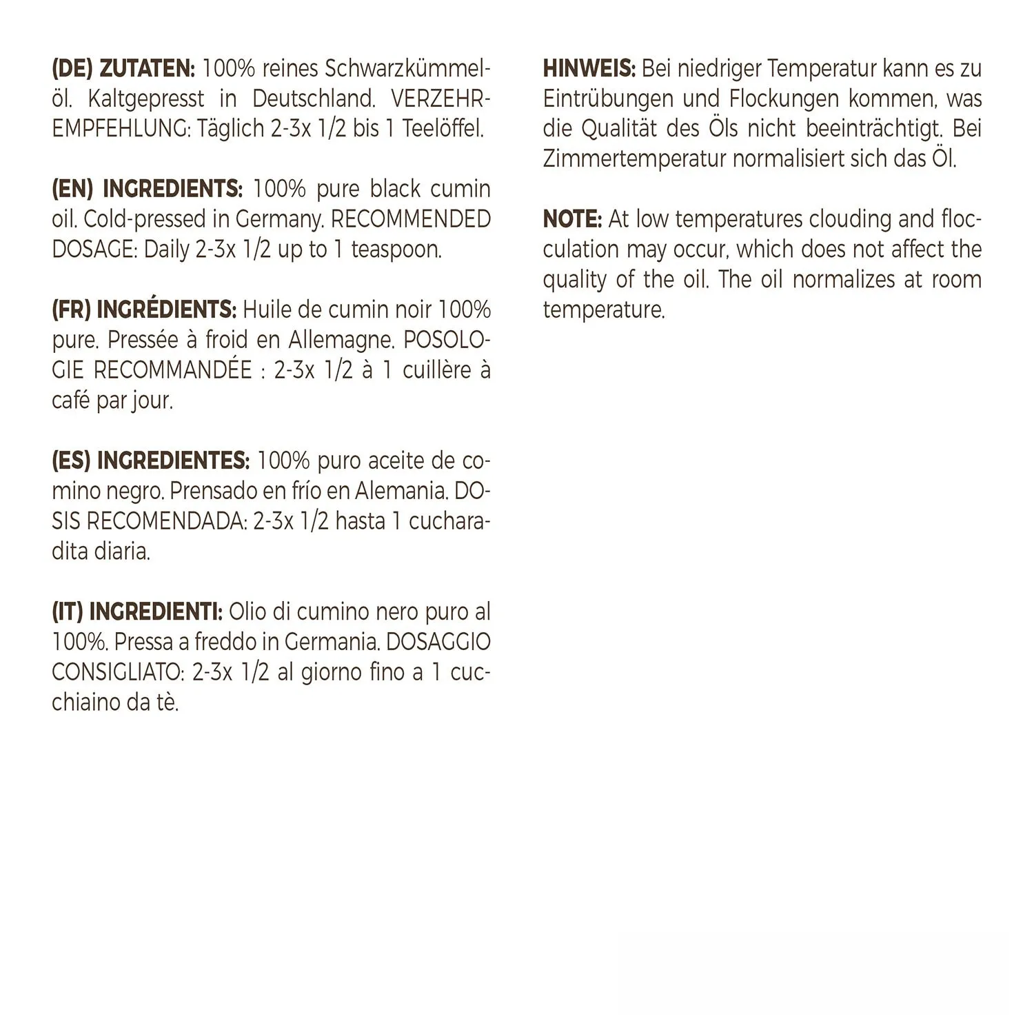 Entdecken Sie die Reinheit und Vielfalt von GreatVita Schwarzkümmelöl, kaltgepresst und ohne jegliche künstliche Zusätze. Unser Öl ist frei von Glutamat, Geschmacksverstärkern, Farbstoffen, Aromen und Konservierungsstoffen, um Ihnen die natürlichste Qualität zu bieten. Es enthält keine Füllstoffe wie Salz, Dextrose, Stärke oder Zucker und bleibt in seiner reinsten Form (gefiltert).