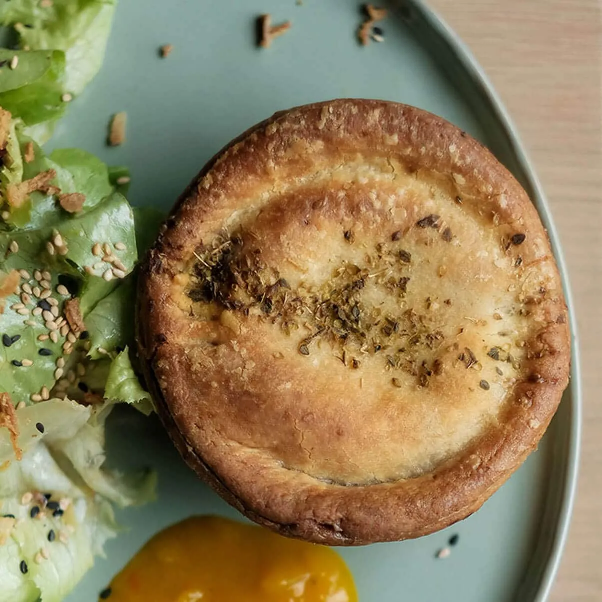 Bei uns in der Schanzenstrasse in Köln servieren wir unsere Pies auf diesem Teller.