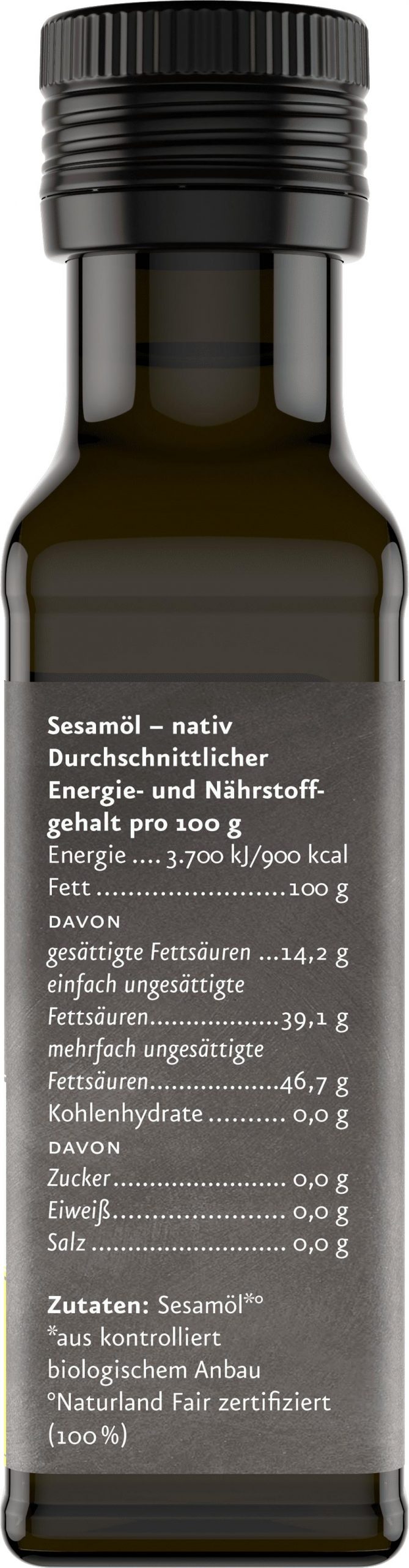 Zutaten: Sesamöl aus kontrolliert biologischem Anbau