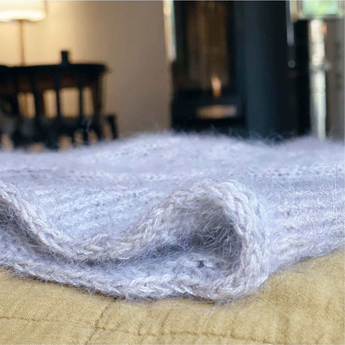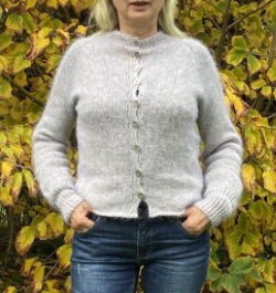 Der Soffi Cardigan wird zweifädig gestrickt: jeweils mit einem Faden Cool Wool Lace und und einem Faden Silkhair.