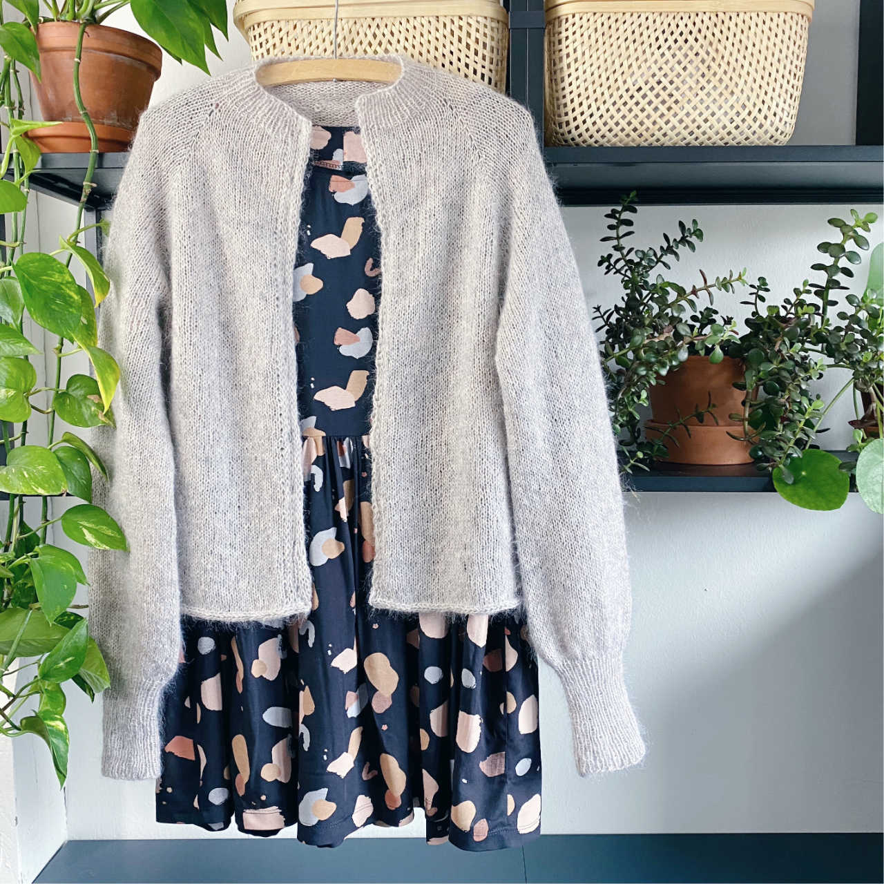 Der Soffi Cardigan ist oversized geschnitten und hat, je nach Größe, eine Mehrweite von ca. 10 bis 20 cm. Er wird glatt rechts von oben nach unten mit Raglanzunahmen ohne Zwischen-maschen gestrickt. Soffi hat hübsche Knopfblenden aus Patentmaschen, die Knopflochleiste wird zusätzlich von einem I-Cord-Rand geschmückt. Die Ballonärmel werden mit dem Magic Loop oder einem Nadelspiel rund gestrickt. Soffi hat als Abschluss einen I-Cord Saum.