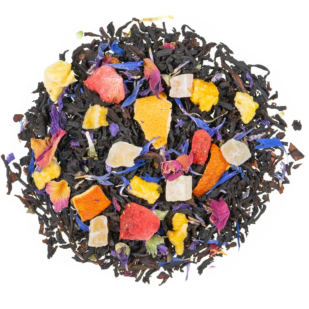 Ein kräftiger Schwarztee mit dem leckeren Geschmack von Aprikosen und Erdbeeren. Ein fruchtiger, süßlicher Tee, der im Sommer auch wunderbar als Eistee getrunken werden kann.