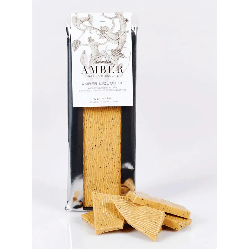 Die weiße Bio-Schokolade Amber Classic ergibt zusammen mit knusprigen Karamellstücken die neue Amber Caramel Schokolade von Summerbird aus Dänemark. Außerdem sind noch sehr schön aromatisches Maldon Salz und ein Hauch Orangenöl hinzugefügt, was diese weiße Schokolade unwiderstehlich macht…