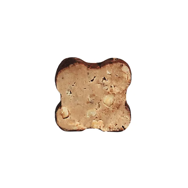 m hellen Schokoladentrüffel sind Karamell und gesalzene Haselnussstückchen verarbeitet. Der zarte Salzton unterstreicht die gute Schokolade. Ummantelt ist der Trüffel von einer feinen Schicht Kakaopulver.