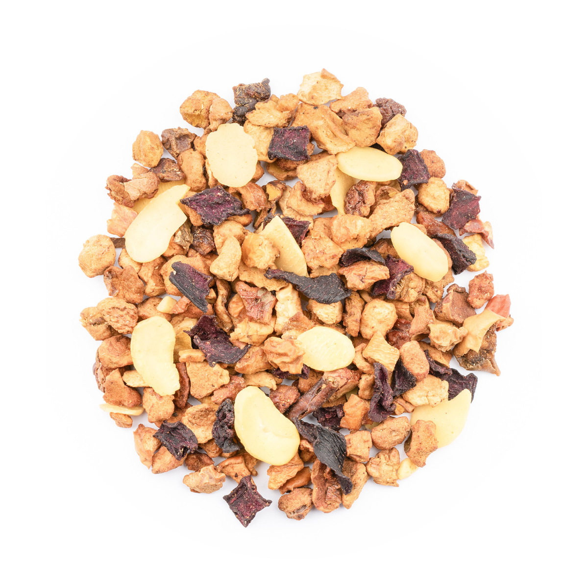 Apfelstücke, gehackte MANDELN, gehobelte MANDELN, Zimtstücke, Rote Bete, Aroma.