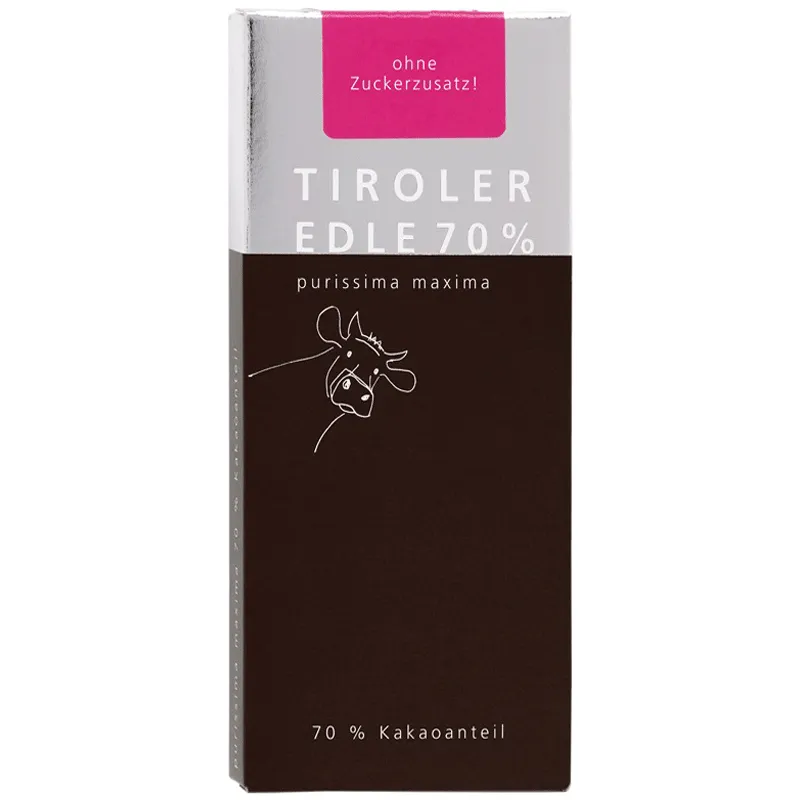 Tiroler Edle Schokolade 70% Purissima Maxima mit Milch