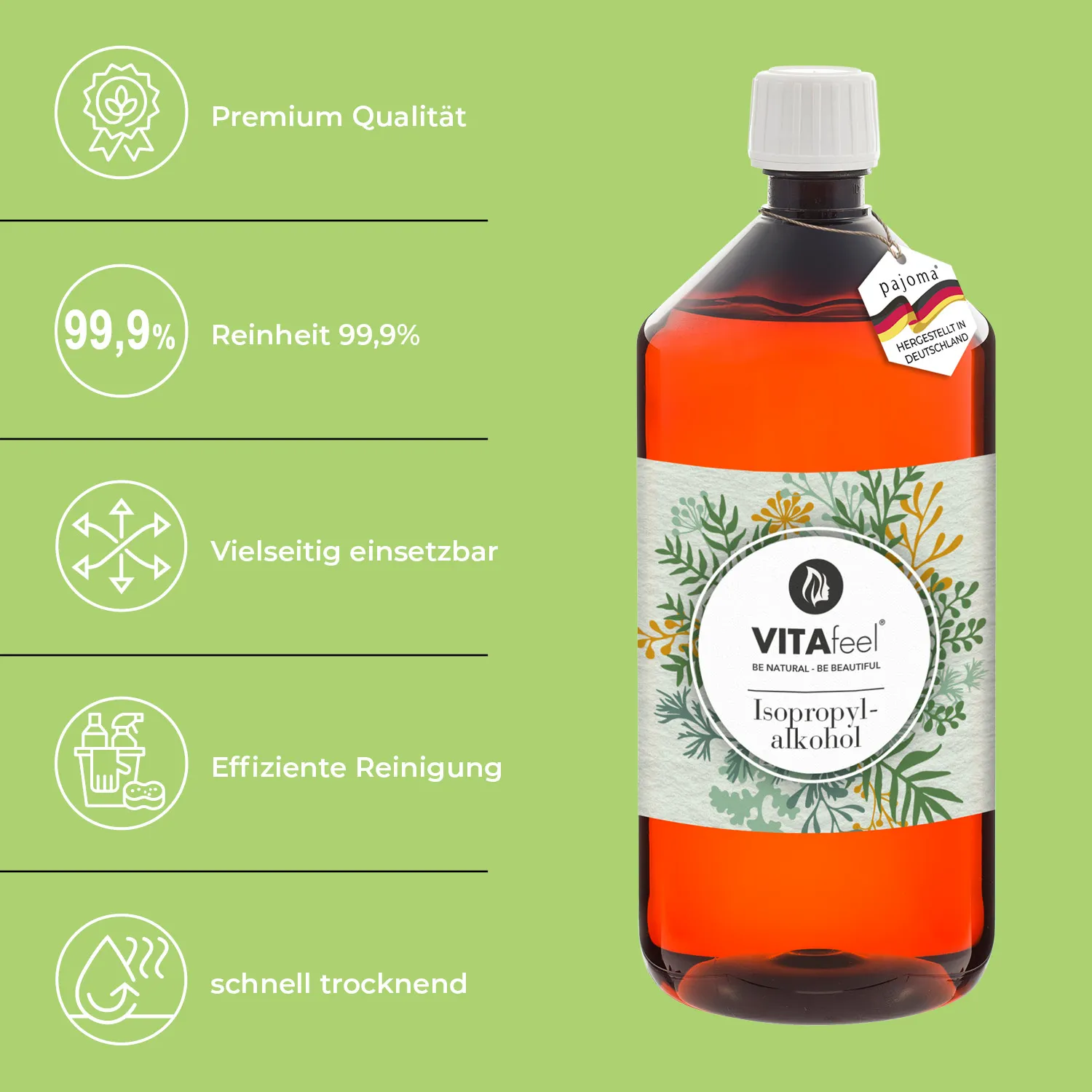 Schreibe die erste Bewertung für „VitaFeel Isopropylalkohol 99,9% Reinigungsalkohol, 1000 ml“