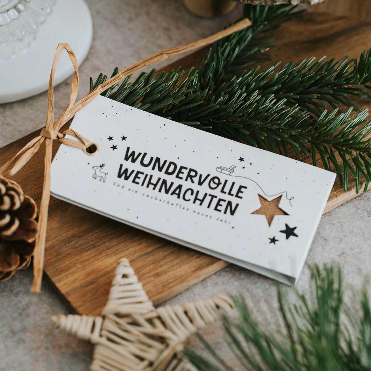Geschenkanhänger mit Gewürz | Spruch “Wundervolle Weihnachten” | Gewürz: Lebkuchengewürz | Recyclingkarton, mit kompostierbarer Schutzfolie | ohne Dekoration